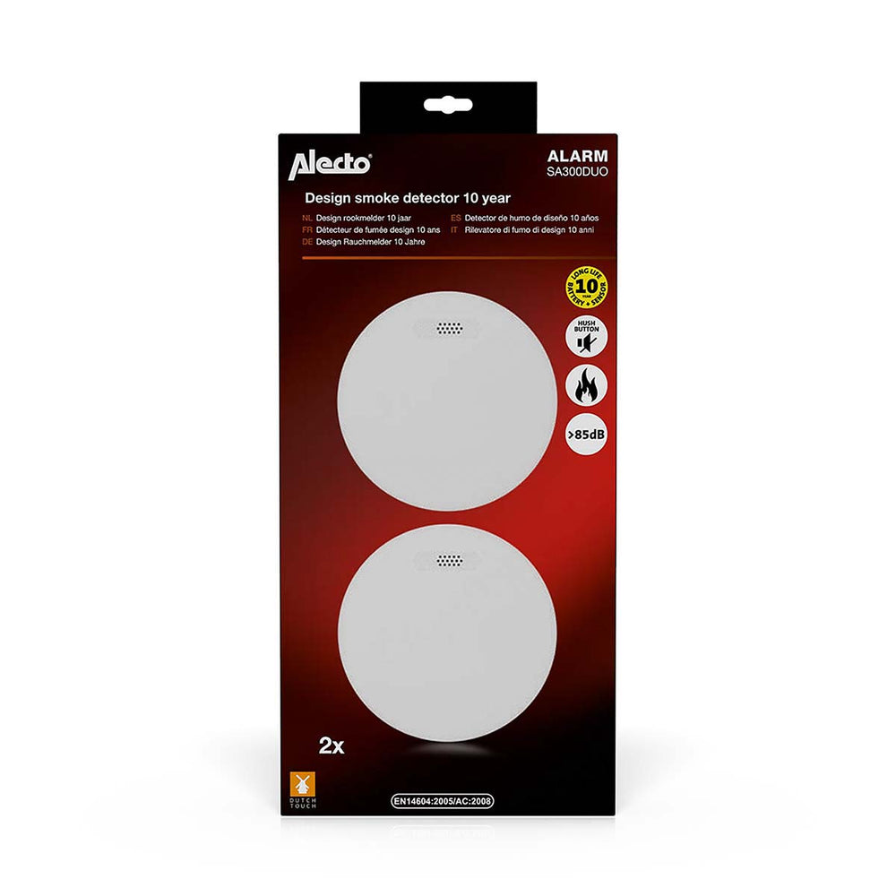 Alecto SA300 DUO - Design smoke detector with 10 year battery - 2 pack - White - 2 pcs is backordered and will ship as soon as it is back in stock.