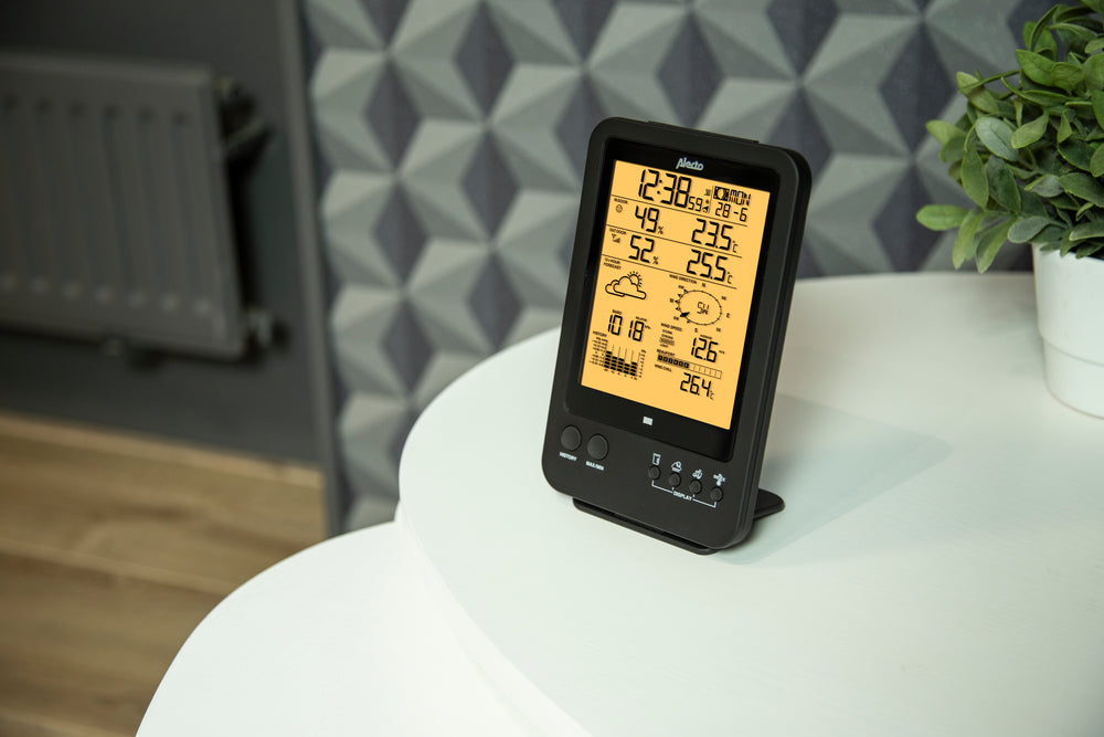 We have also thought of ease of use, such as an alarm function with snooze and a notification when the battery is almost empty, or you are out of range of the mast. Incidentally, that range is 100 metres in open field. Finally, the display unit is suitable for table and wall mounting. With this weather station you choose a smart, flexible and versatile device and with Alecto, you choose a well-thought-out and user-friendly product of high quality.