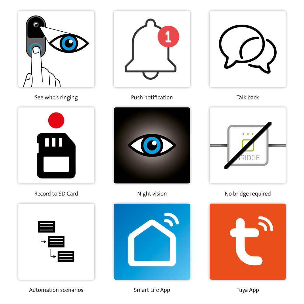 The doorbell works with the Smart Life app or Tuya app, both of which are free to download on iOS and Android devices. All Alecto Smart Life products can be managed through this app. The SMART doorbell can also be integrated into home automation scenarios. For example, you can set it up so that your light starts flashing when someone rings the doorbell – ensuring you’ll never miss a visitor.