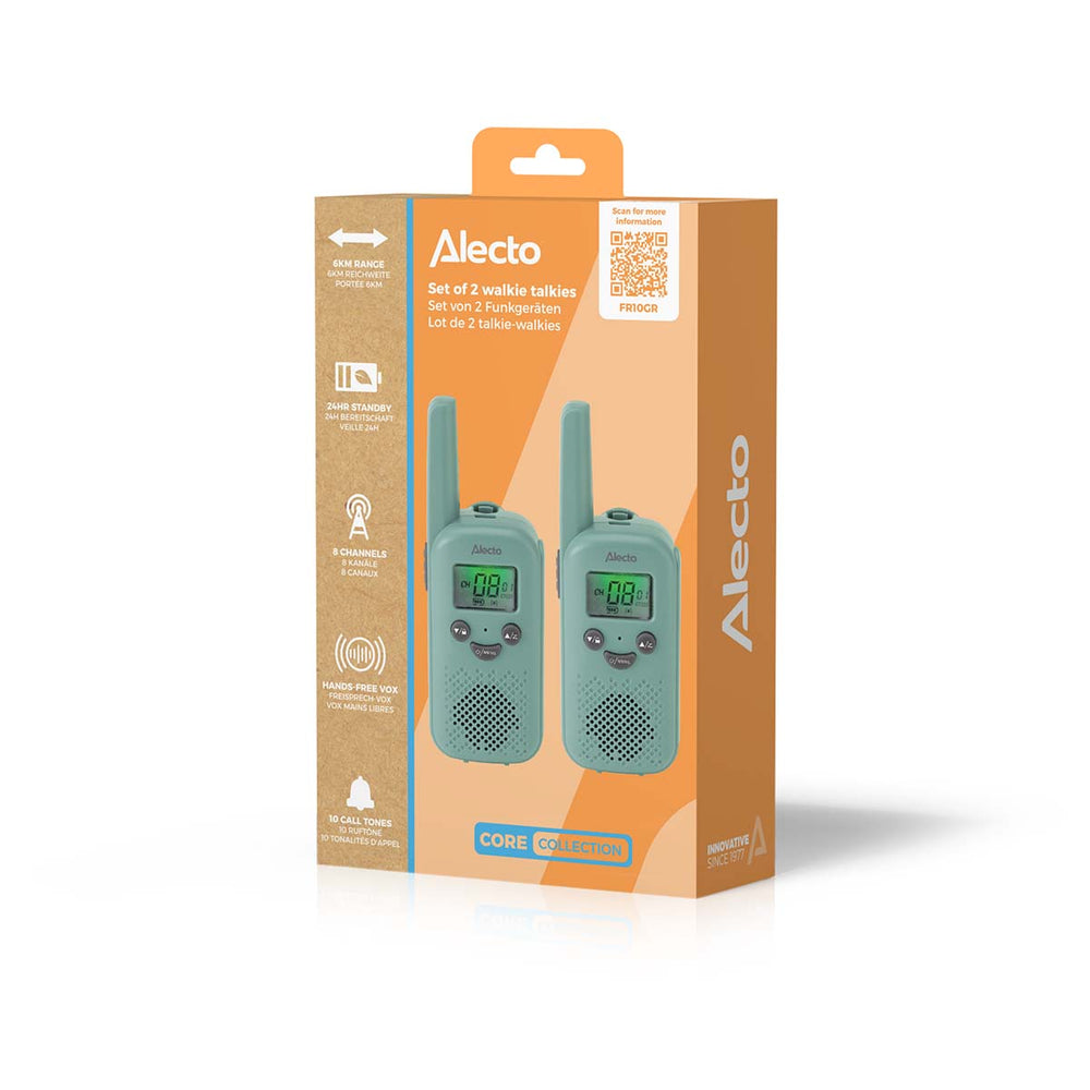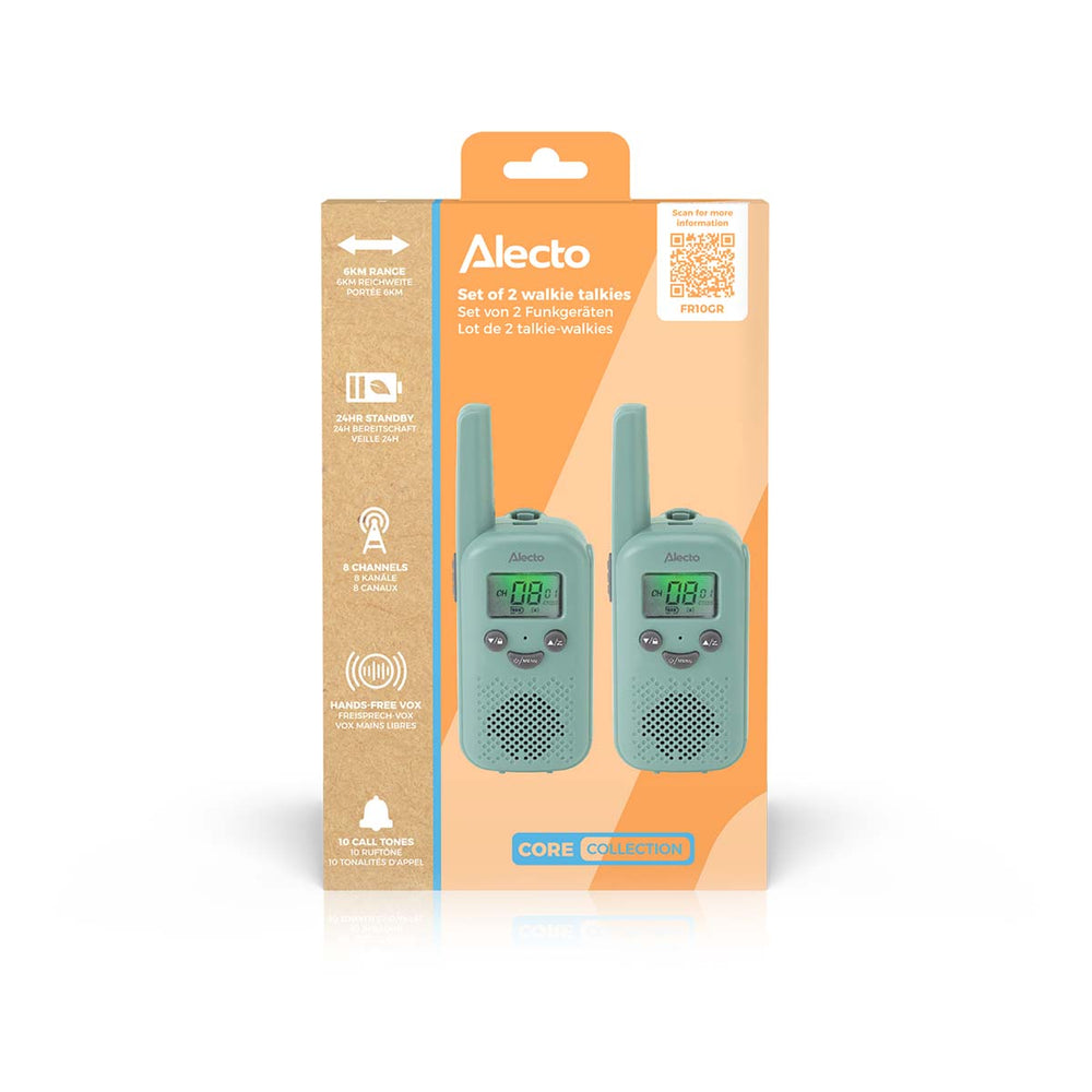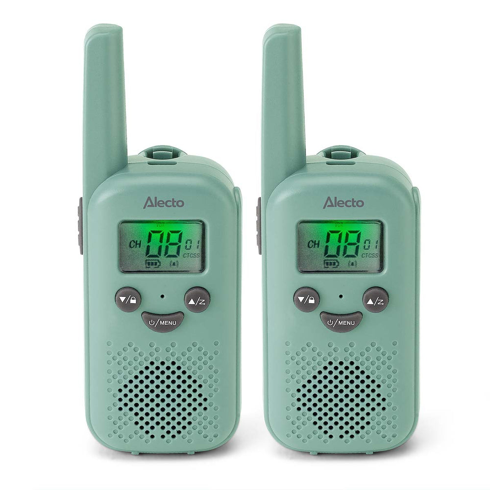 Looking for a fun, safe and easy way for children to communicate while they play? The Alecto FR10GR is a set of two rechargeable walkie-talkies for kids, finished in a fresh mint green colour. Ideal for adventures in the garden, outdoor play, on holiday or simply around the house. Thanks to the simple controls and lightweight design, these walkie-talkies are perfect for children aged 4 and up, while you as a parent can rely on quality and reliability.