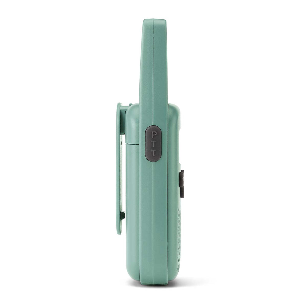 Alecto FR10GR - Set of two rechargeable walkie-talkies for kids - Range up to 6 kilometres and long standby time up to 24 hours - Mint green - Green is backordered and will ship as soon as it is back in stock.