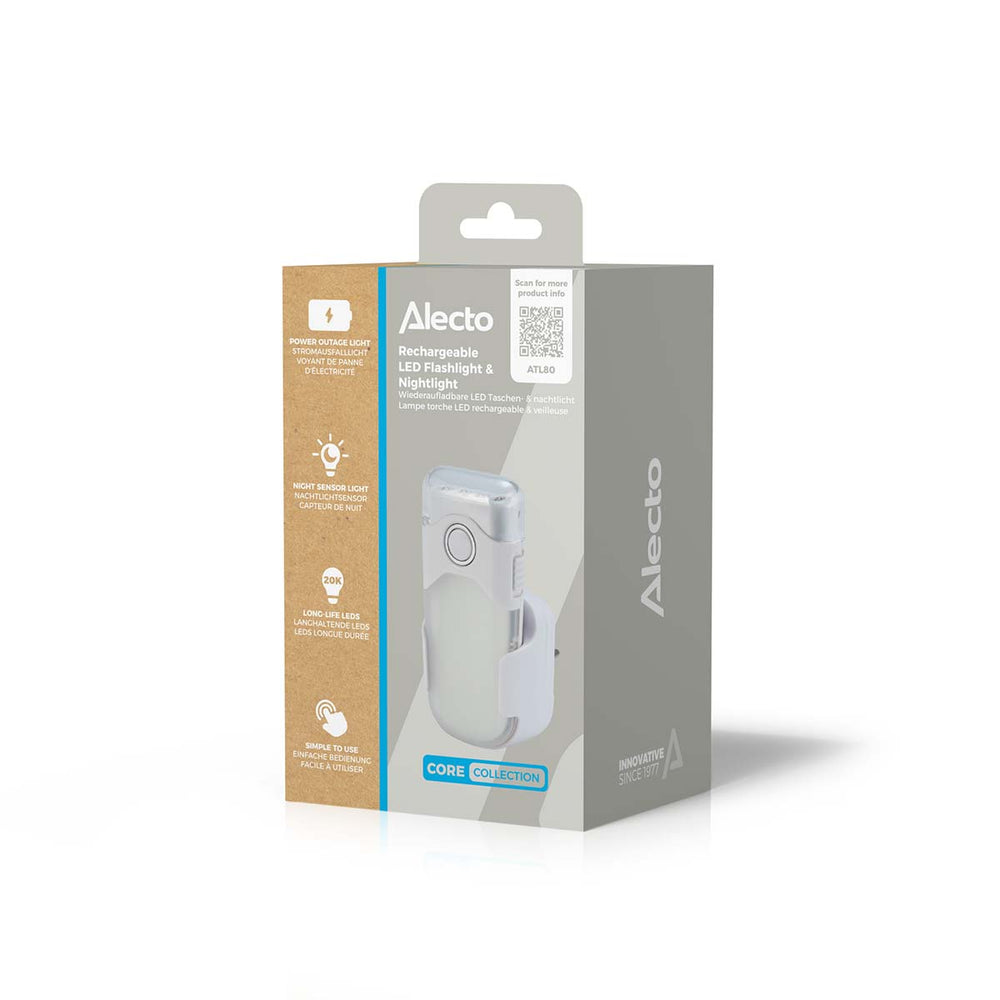 Alecto ATL-80 - Rechargeable LED flashlight / automatic LED nightlight, white