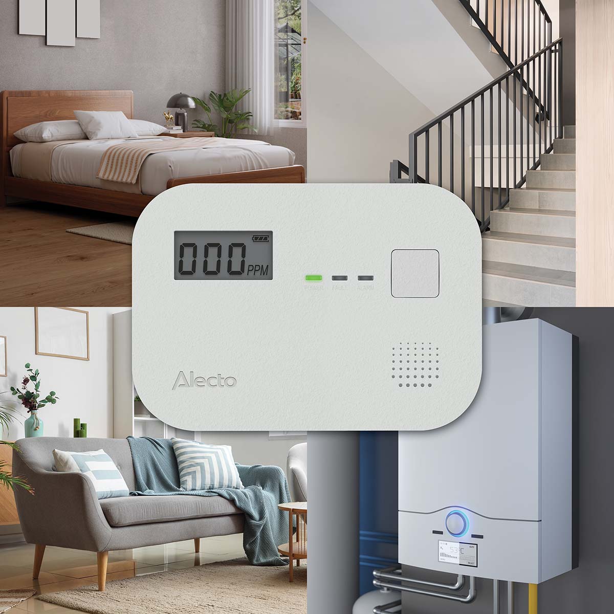 A long-term presence of a low CO concentration is also harmful to your health. The Alecto COA3910 carbon monoxide alarm already gives a warning when a concentration of 30 ppm or less is detected for 60 minutes.