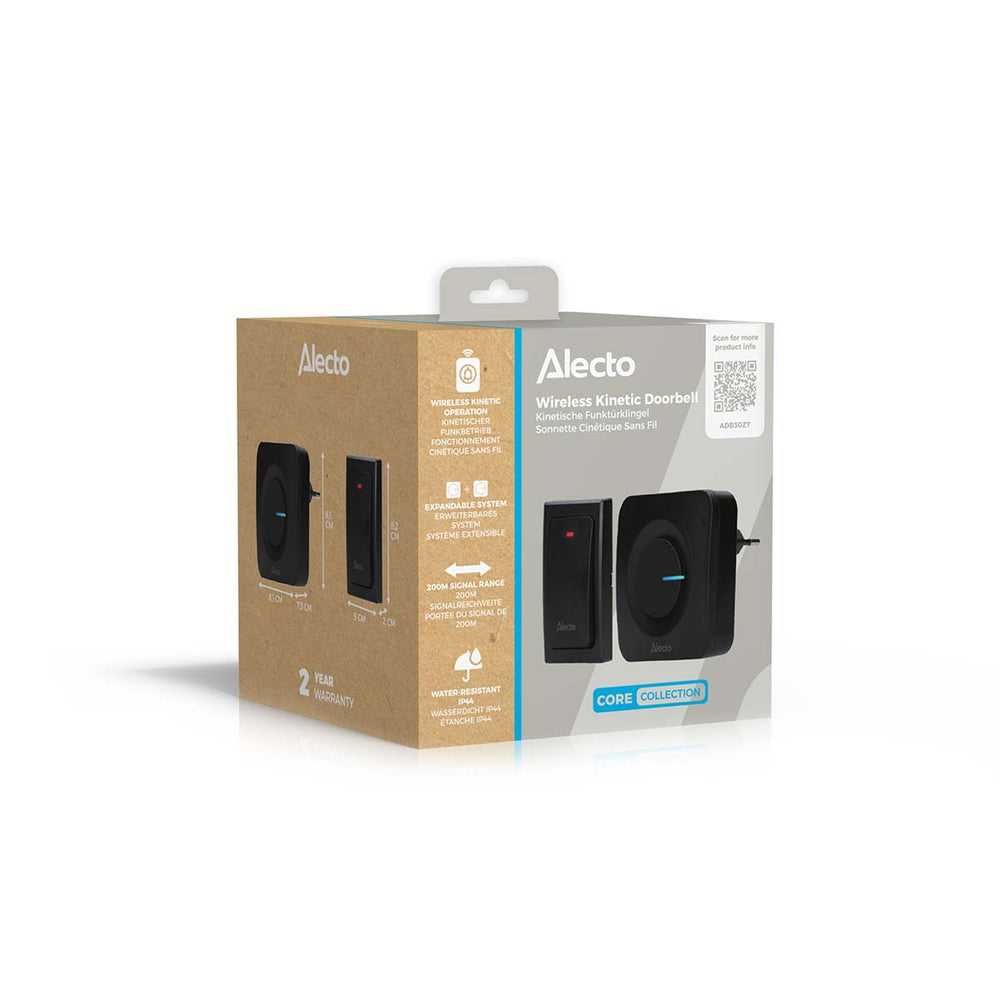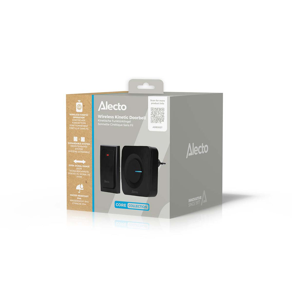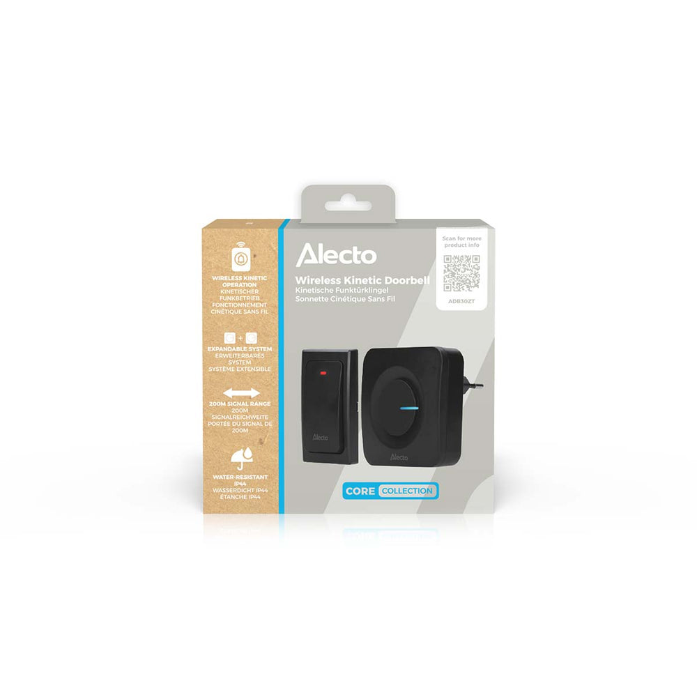 The Alecto ADB30ZT is a wireless kinetic doorbell that works on kinetic energy without the use of electrical cables or batteries. At the press of a button, energy is generated and the doorbell functions completely environmentally friendly.