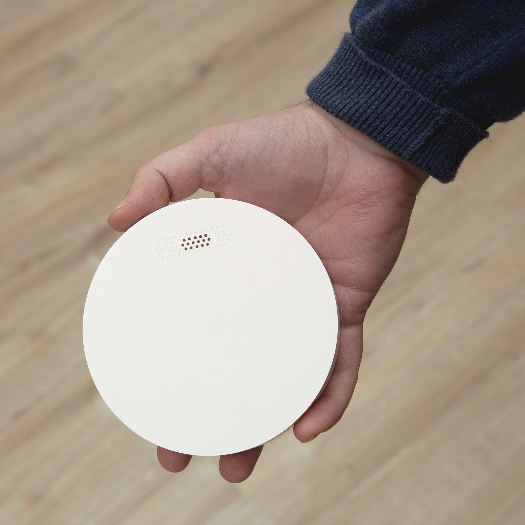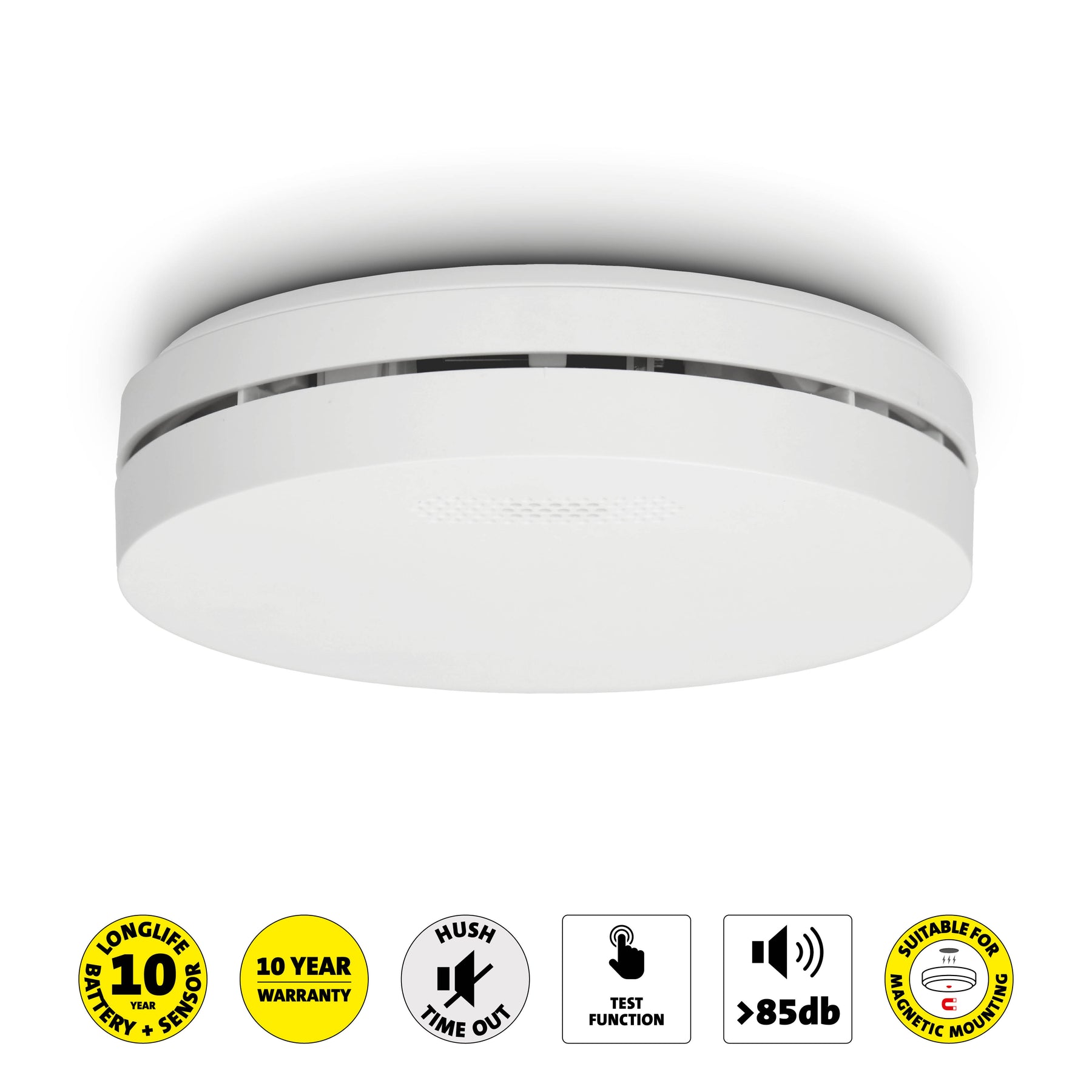This sleek design smoke detector has a lithium battery that lasts no less than 10 years and is energy efficient and reliable. The high-quality optical sensor also has a lifespan of 10 years so you are assured for the next 10 years you will be immediately alarmed if there is smoke or fire in the house. This product comes with a 10-year warranty. If the battery is almost empty, you will receive a warning.