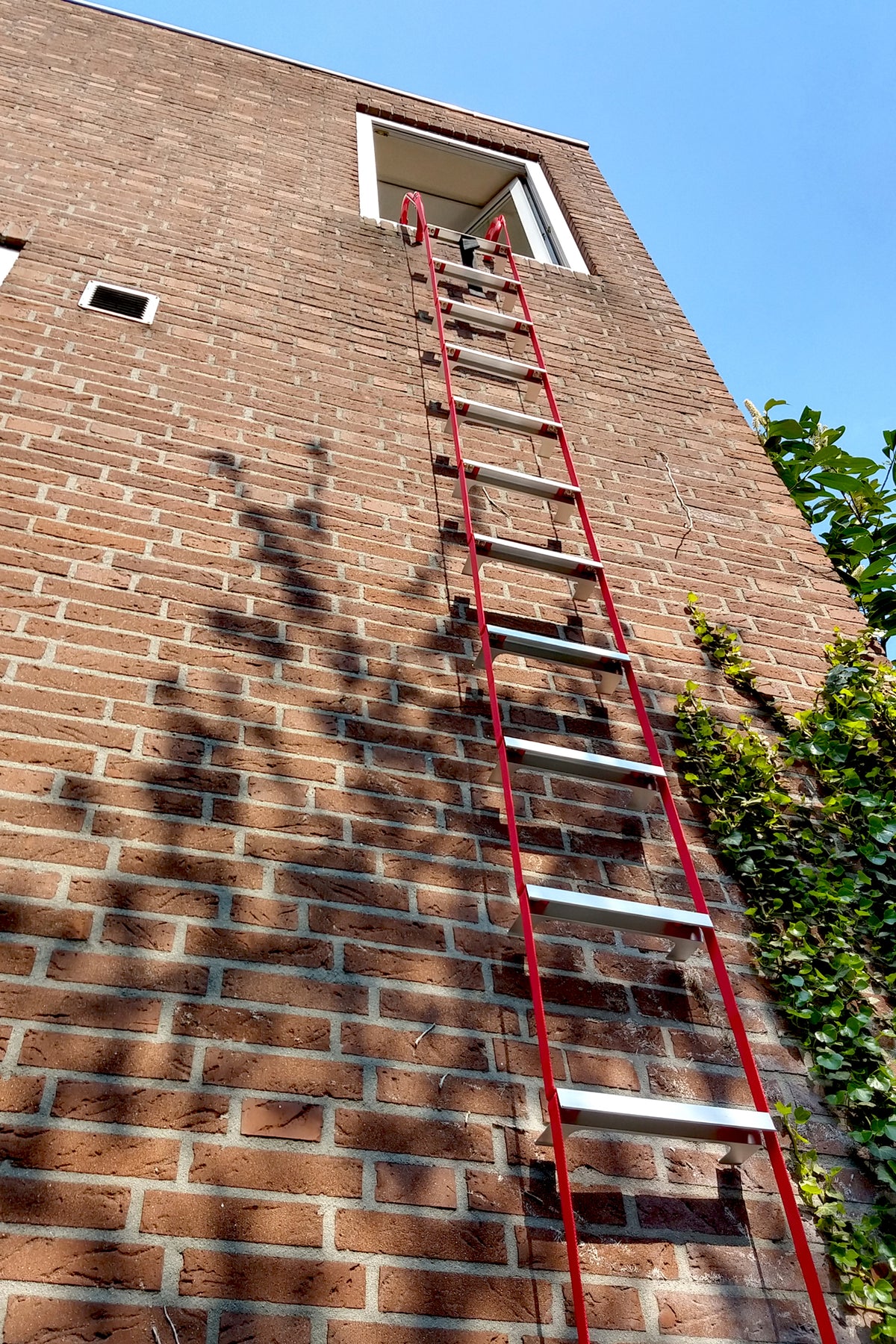 Better safe than sorry. There are products you hope you will never need, but you’d be happy to have if you need to. Our EL-450 flight ladder is one such product. It’s designed to enable rapid evacuation in the event of an emergency and fire. Thanks to its design, it’s quick and easy to use by everyone in your home. No complications, just unfold it and get to safety. The EL-450 is suitable for most types of window frames. With a length of four meters/13 feet, it creates safety and escape possibilities for several floors. The emergency ladder has been tested by us and a third party. This has earned the EL-450 a TÜV certification. It also meets the EN131-2/3 standard for ladders.
