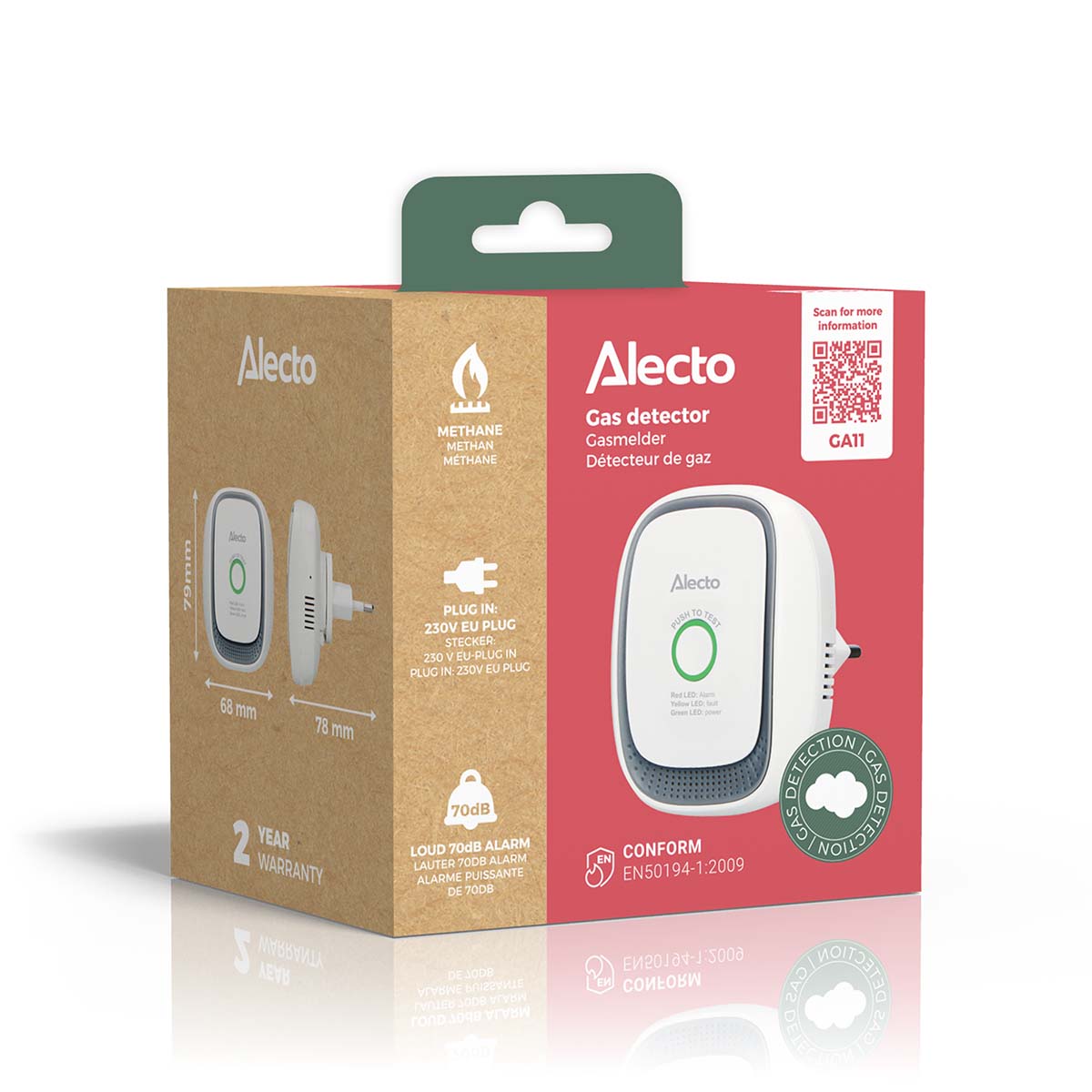 With the Alecto GA11 gas detector in your home, you will be quickly alerted when toxic gases are released. This gas detector focuses solely on alerting upon the detection of natural gas, also known as methane. The gas detector is ready for immediate use; you simply plug it into a socket and it operates instantly. Ensure you perform this action close to a gas source, such as a water heater, heating boiler, or gas stove. In addition to a clear acoustic alarm, the GA11 also provides a visual alarm through a LED ring that lights up red.