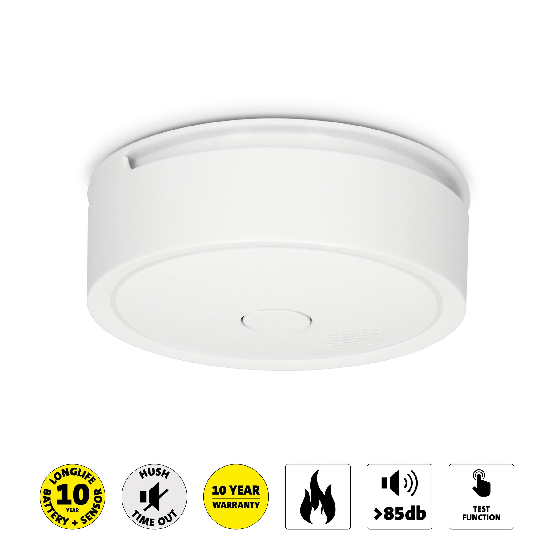 The Alecto SA61 smoke alarm can be connected to other smoke alarms wirelessly, creating extra fire safety. Your environment will be protected optimally, because if one alarm detects smoke or fire, all linked smoke alarms sound the alarm. This wirelessly connectable smoke alarm has a battery and optical sensor that both last for 10 years. The SA61 gives you the assurance of a safe environment for a decade. This smoke alarm has passed the highest European inspections and meets the relevant requirements.