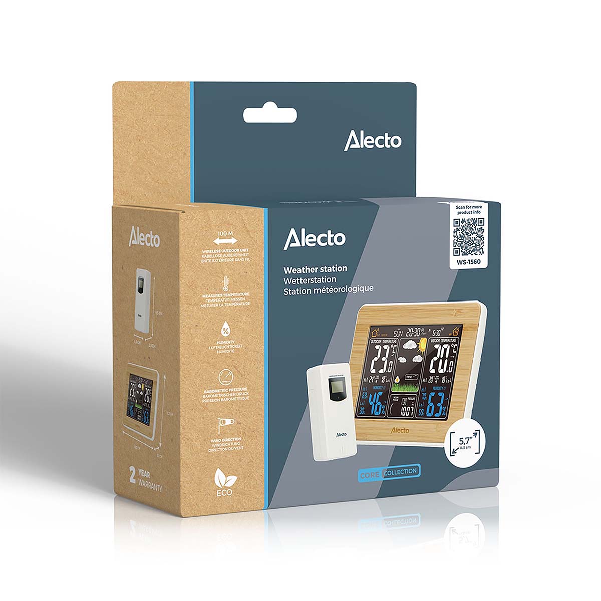 Measure temperature, humidity and precipitation with the Alecto WS-1560 bamboo weather station. This weather station with wireless outdoor sensor measures the temperature and humidity both indoors and outdoors.