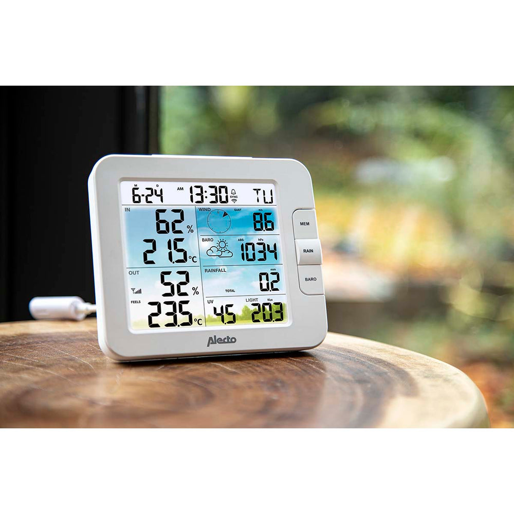 The Alecto WS5400 is an 8 in 1 WiFi weather station with outdoor sensor and app control, ideal for the more professional user. This weather station with outdoor sensor is equipped with a WiFi connection and features no fewer than 8 sensors on the indoor and outdoor unit. This gives you direct insight into current, local weather conditions. All values can be read via the colour display and the Smart Life app on your phone or tablet. In the Smart Life app you can also connect numerous other smart products. Let smart products work together in automated scenarios.
