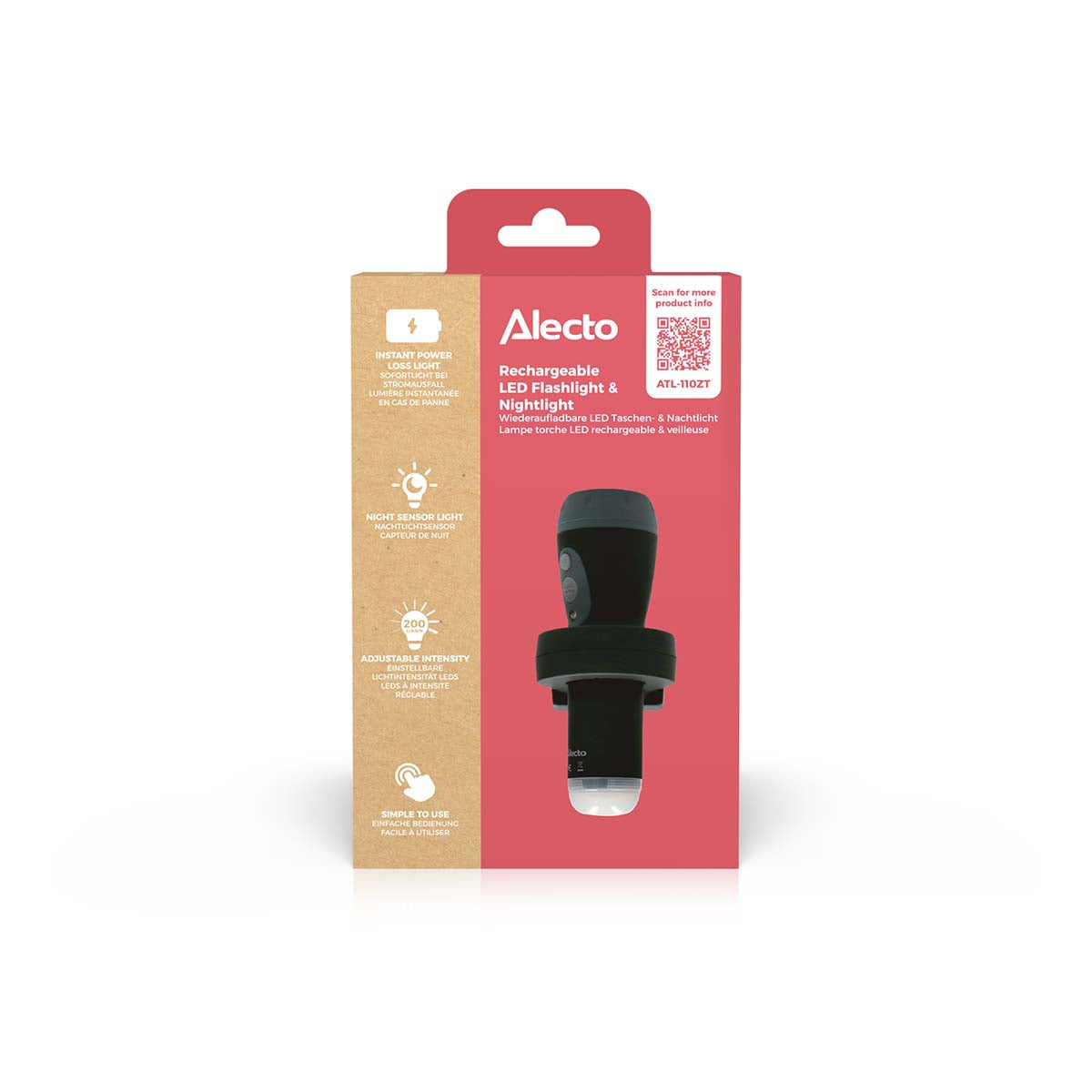 Alecto ATL-110ZT Rechargeable LED flashlight, Automatic Night Light with Rechargeable Light Sensor- always ready for use. Also available in the color white.