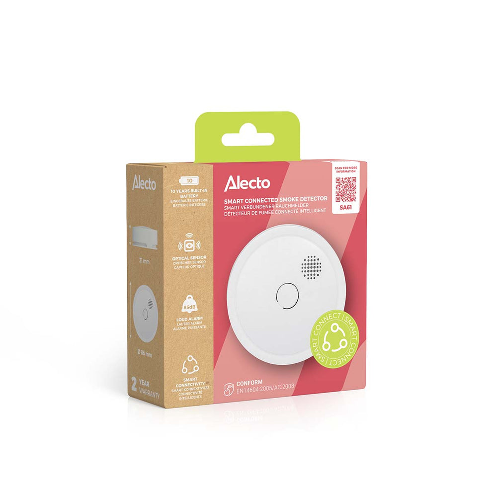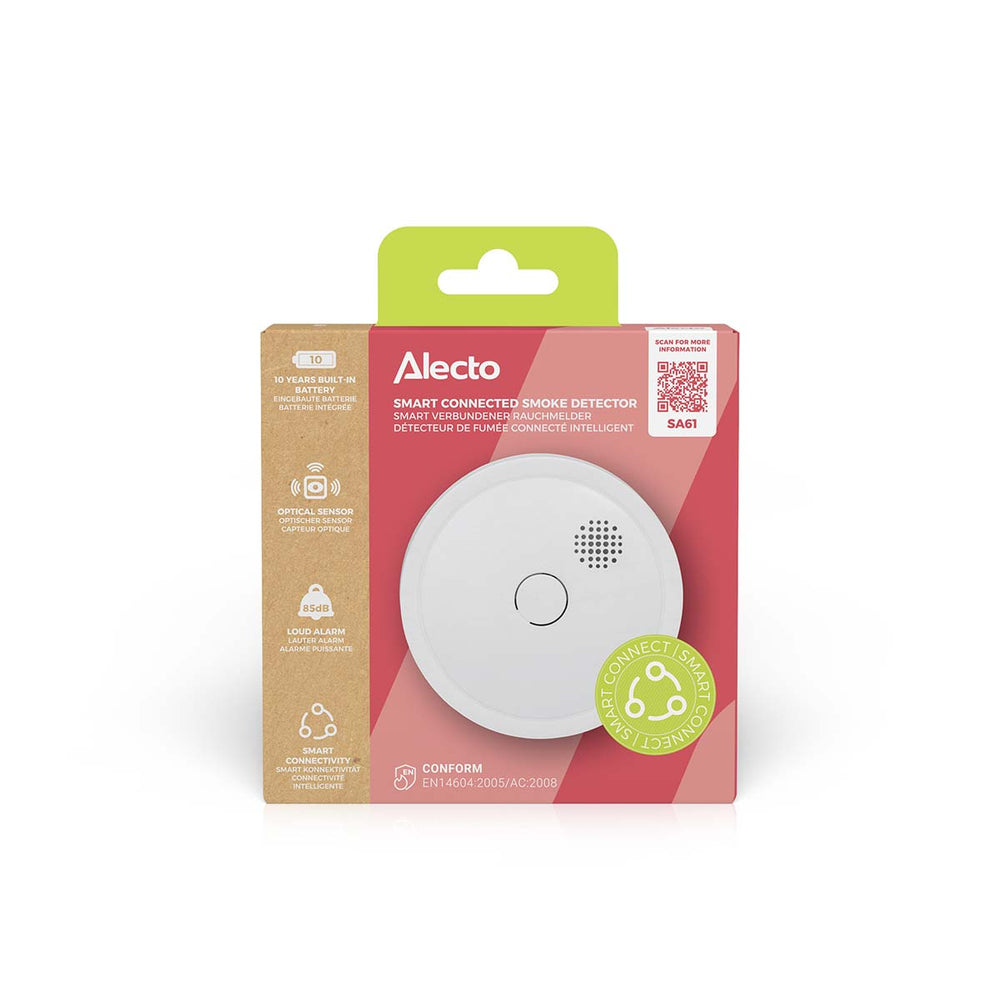 The Alecto SA61 smoke alarm can be connected to other smoke alarms wirelessly, creating extra fire safety. Your environment will be protected optimally, because if one alarm detects smoke or fire, all linked smoke alarms sound the alarm. This wirelessly connectable smoke alarm has a battery and optical sensor that both last for 10 years. The SA61 gives you the assurance of a safe environment for a decade. This smoke alarm has passed the highest European inspections and meets the relevant requirements.