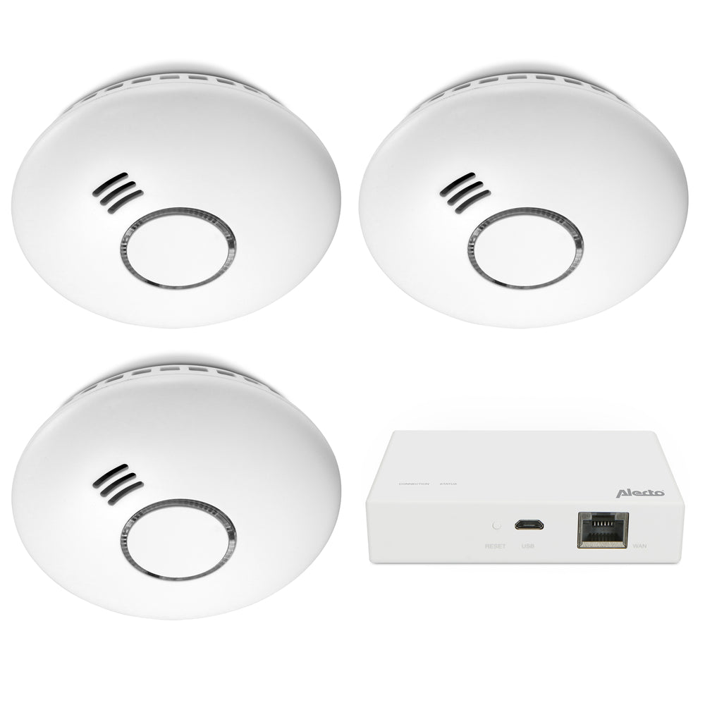 Alecto SMART-SMOKE103 - Zigbee Smart Starter Set - Smart Bridge with 3 Smoke Detectors - White