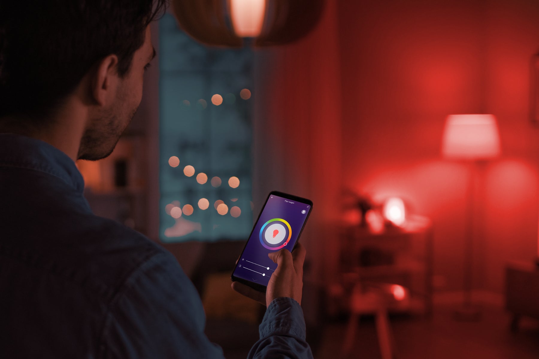 Easily automate your lighting with the SMARTLIGHT40. With up to 16 million colours (RGB), the smart lamp creates ambient lighting in your home. This colour LED lamp works easily and directly via Wi-Fi, so you don’t need a bridge or gateway. You can adjust the colour and brightness using your smartphone or tablet. The lamp is dimmable and due to its different colour temperatures, you can choose a bright white colour or opt for a warm atmosphere (2,000-4,000K). Enjoy a nice and warm light during a cosy evening with friends and make use of bright white light while working or cleaning.