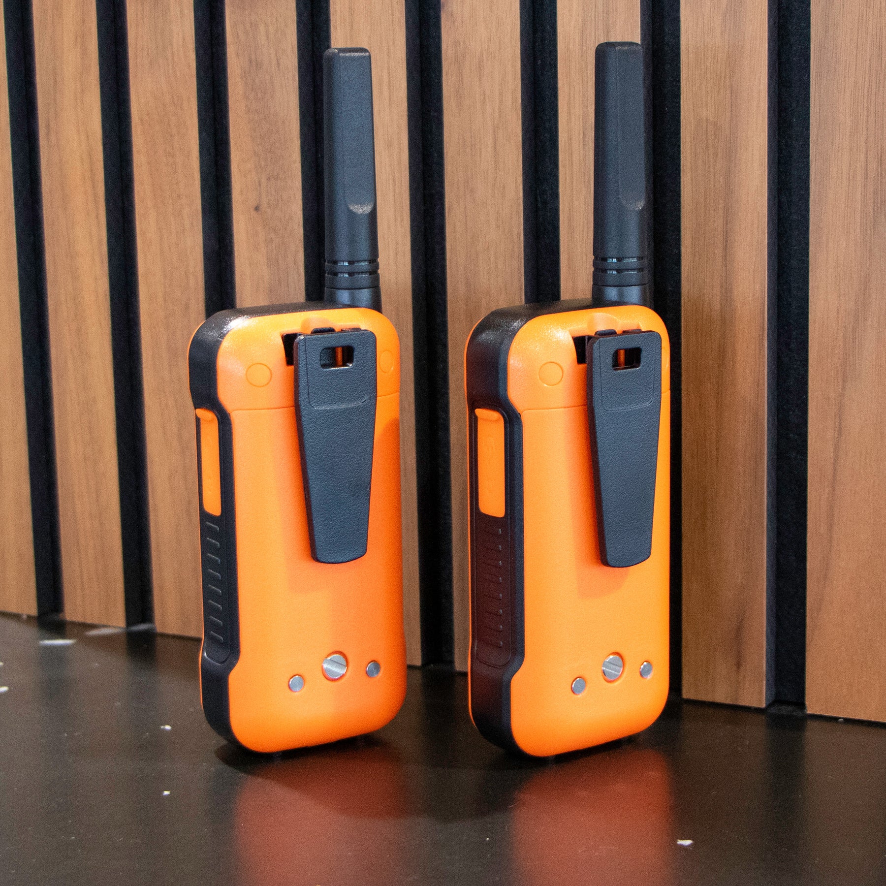If you accidentally drop the walkie-talkie in the water, that is no problem. It floats and, combined with its striking orange colour, makes it easy to get hold of again. Finally, the FR300 is equipped with a torch that starts flashing an SOS signal as soon as you hit the water.