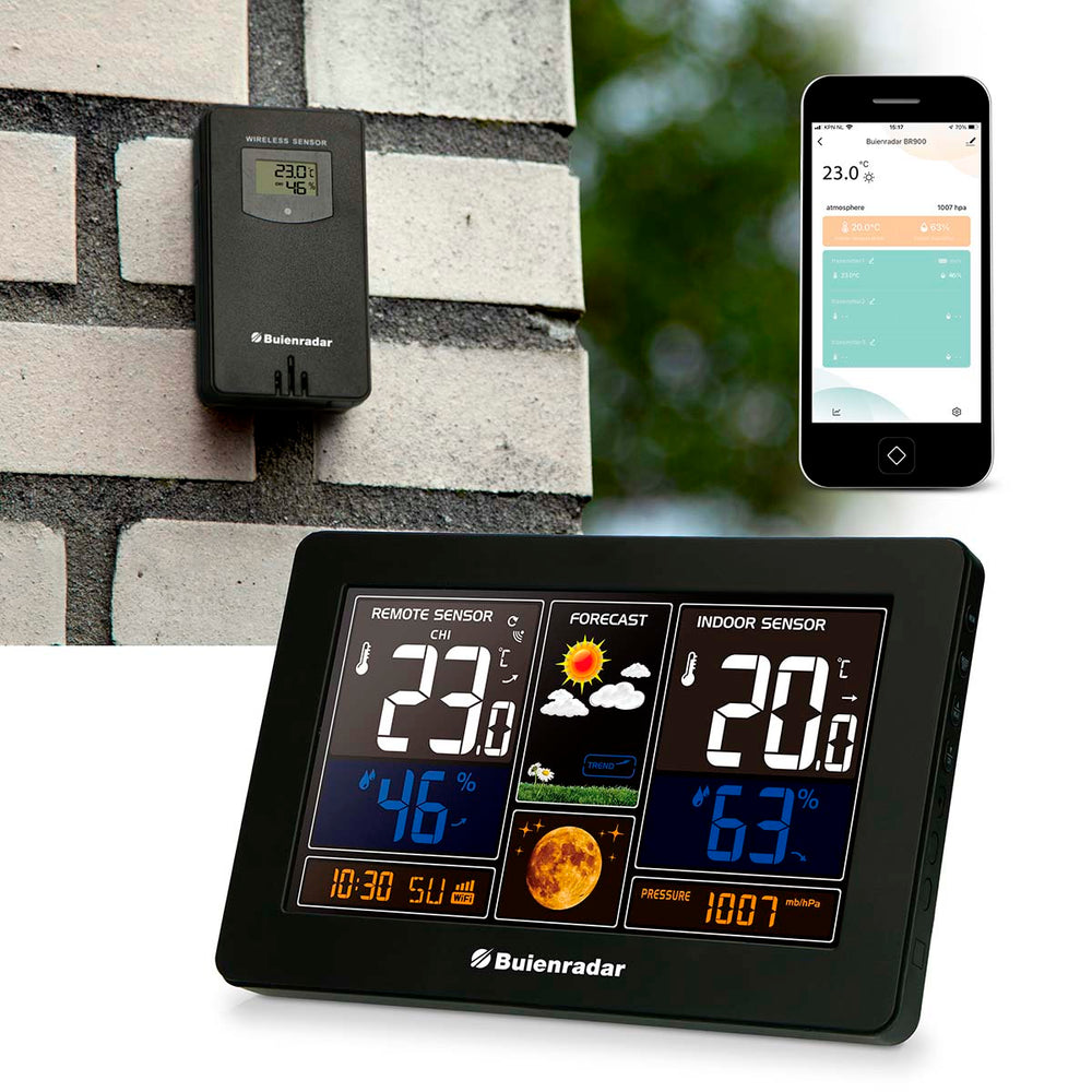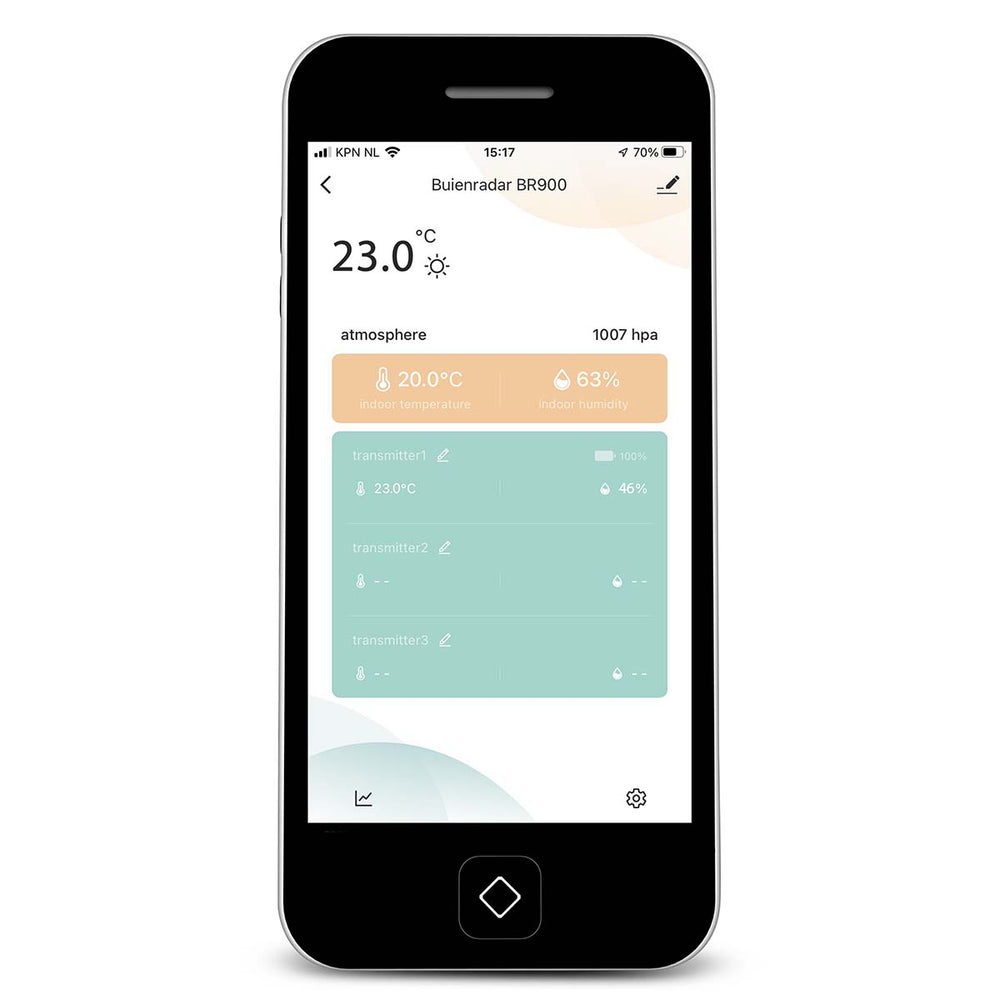 Buienradar BR900 - 3 in 1 Wi-Fi weather station with app and wireless outdoor sensor, black