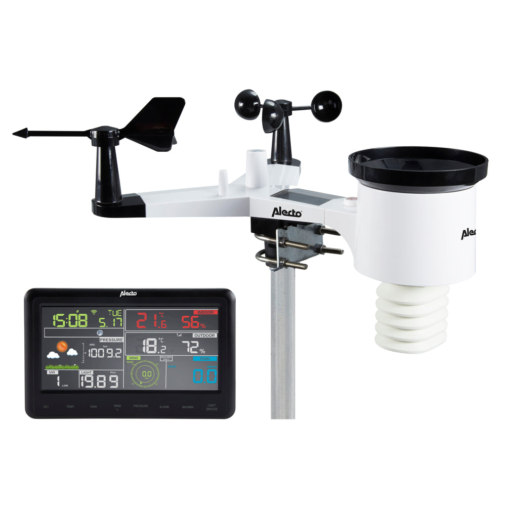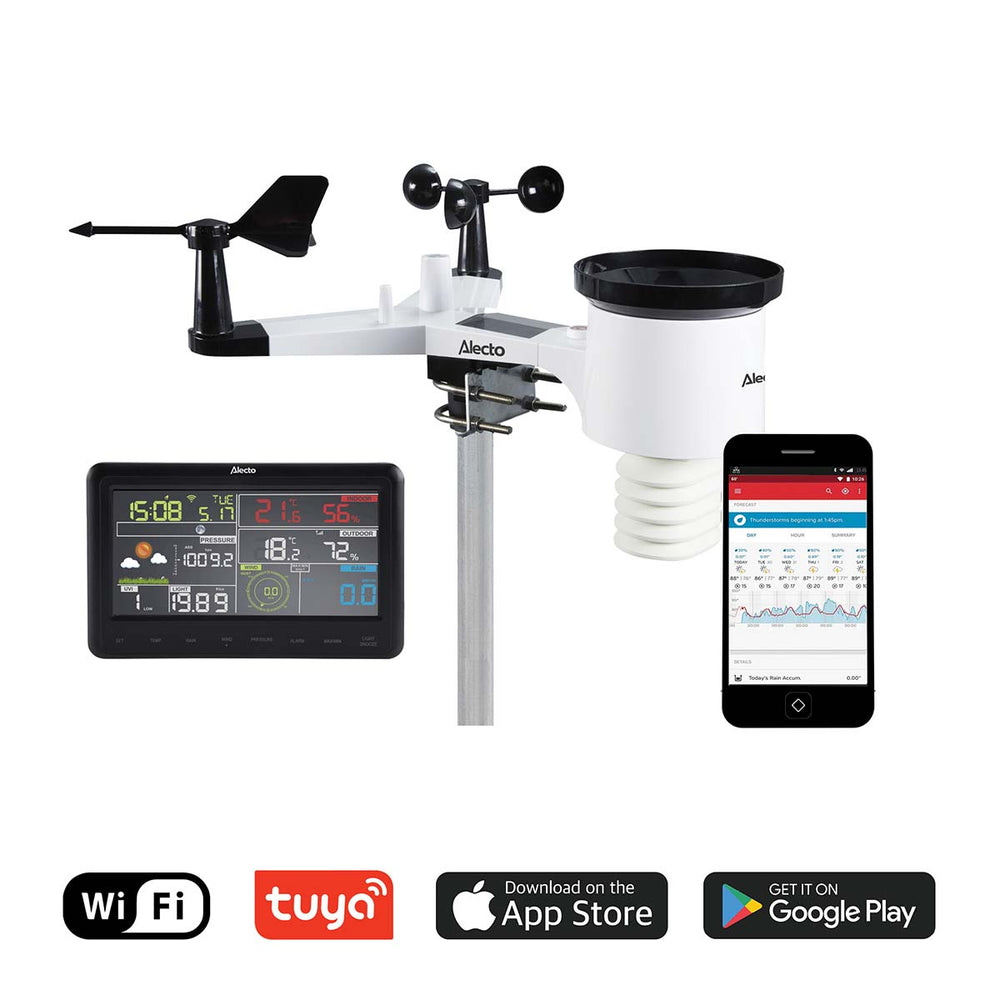 Alecto WS-5500 - Professional 8-in-1 WiFi Weather Station with App and Wireless Outdoor Sensor - Black