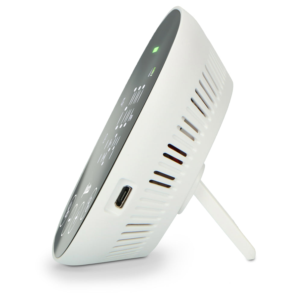 In addition to the professional CO2’s NDIR sensor, the relative humidity (RH) and temperature are measured. This will help you to always be aware of the indoor climate and know when to ventilate the room.