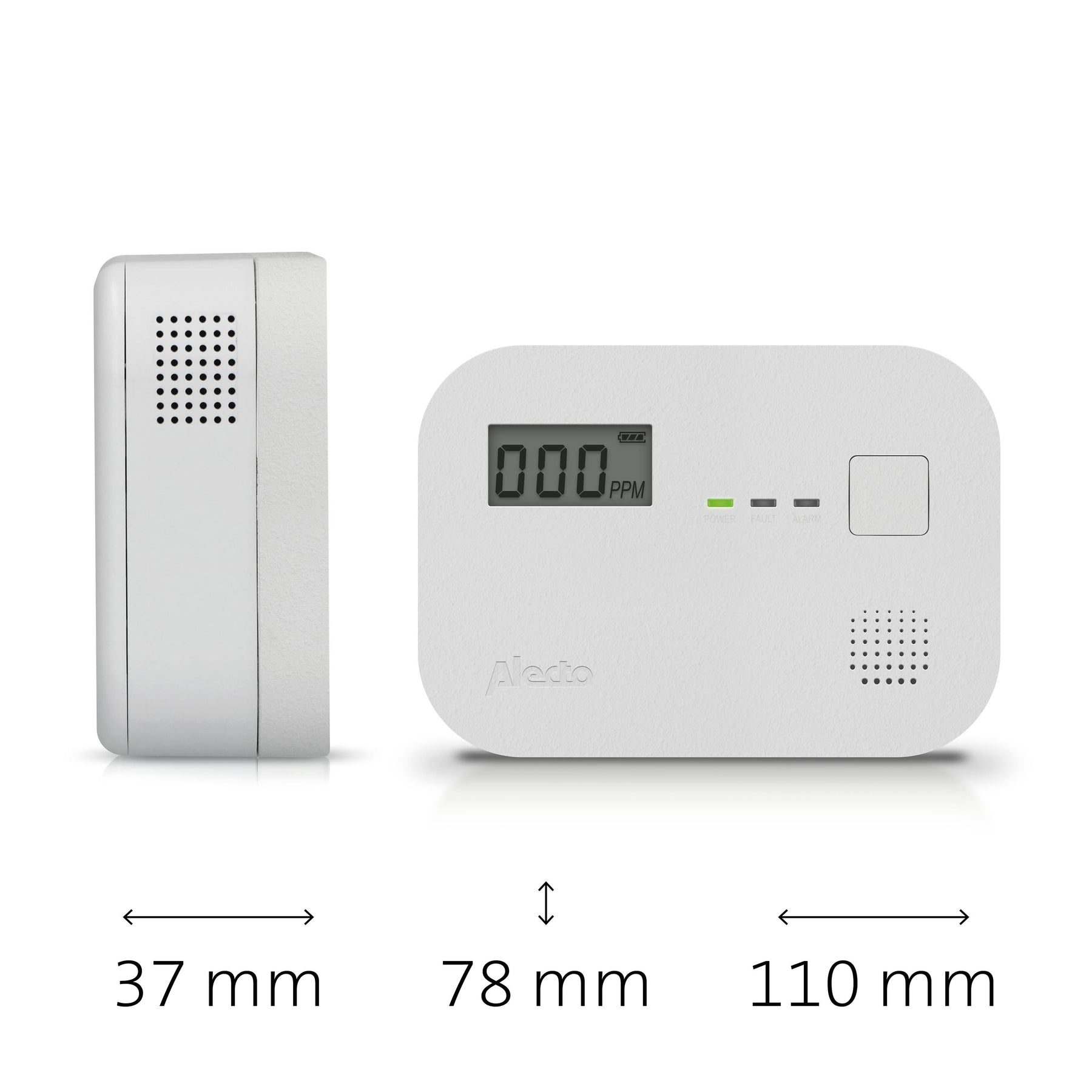 A long-term presence of a low CO concentration is also harmful to your health. The Alecto COA3910 carbon monoxide alarm already gives a warning when a concentration of 30 ppm or less is detected for 60 minutes.