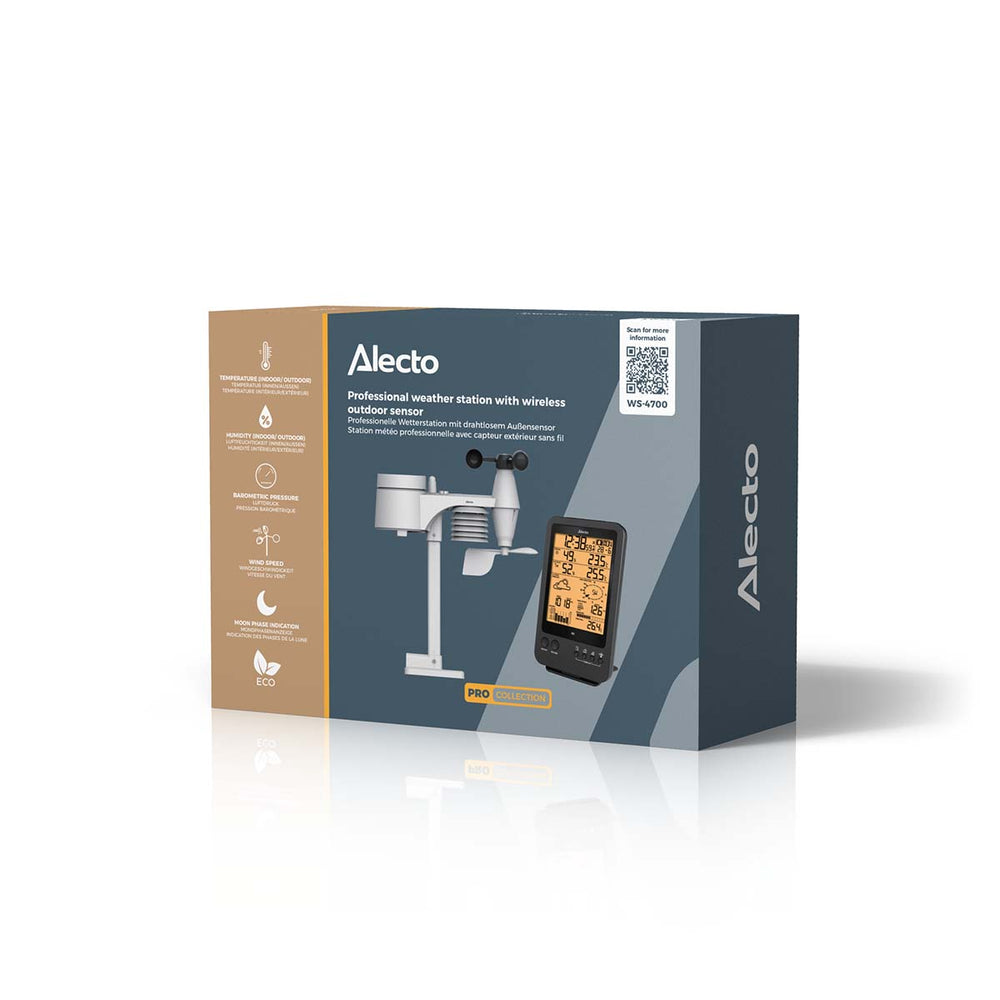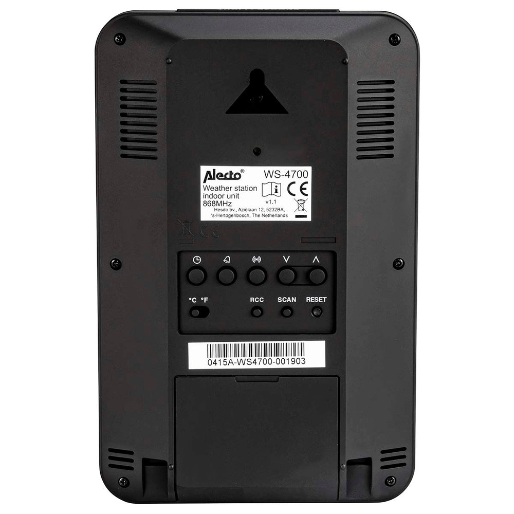 We have also thought of ease of use, such as an alarm function with snooze and a notification when the battery is almost empty, or you are out of range of the mast. Incidentally, that range is 100 metres in open field. Finally, the display unit is suitable for table and wall mounting. With this weather station you choose a smart, flexible and versatile device and with Alecto, you choose a well-thought-out and user-friendly product of high quality.